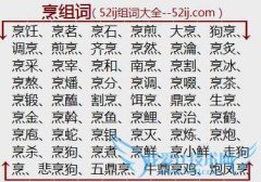 组词大全详解[烹组词]如:烹饪、烹茗、烹石、烹煎、大烹、狗烹、调烹、煎烹、齐烹、烹然、烹瀹、烹炙、烹采、烹宰、烹和、南烹、烹割、烹冰、烹熬、烹燔、烹分、烹调...