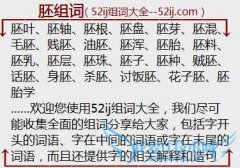 组词大全详解[胚组词]如:胚叶、胚轴、胚根、胚盘、胚芽、胚混、毛胚、贱胚、油胚、胚浑、胚胎、胚料、胚乳、胚层、胚珠、胚子、胚种、贼胚、话胚、身胚、杀胚、讨饭...