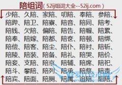 组词大全详解[陪组词]如:少陪、久陪、家陪、叨陪、奉陪、参陪、陪跸、陪卫、陪寮、陪音、陪同、陪考、陪钱、欠陪、偏陪、陪告、陪幄、陪累、陪奉、陪嫁、陪都、陪奁...