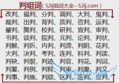 组词大全详解[判组词]如:改判、福判、分判、调判、大判、鬼判、裁判、出判、背判、质判、咨判、运判、肇判、舞判、校判、研判、宣判、审判、书判、谈判、院判、元判...