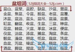 组词大全详解[盆组词]如:盆山、盆堂、盆腔、缺盆、沙盆、盥盆、金盆、焦盆、令盆、脸盆、老盆、盆覆、沐盆、盆浴、盆头、盆吊、盆溢、盆景、缸盆、翻盆、收盆、生盆...