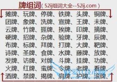 组词大全详解[牌组词]如:摊牌、玩牌、停牌、铁牌、头牌、铜牌、团牌、象牌、洗牌、宣牌、王牌、未牌、云牌、竹牌、捱牌、挨牌、印牌、摘牌、硬牌、招牌、杂牌、验牌...