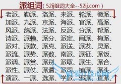 组词大全详解[派组词]如:老派、勒派、洛派、来派、轮派、徽派、加派、九派、京派、海派、官派、高派、风派、鸽派、法派、反派、分派、帮派、诗派、派赖、派分、派定...