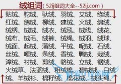 组词大全详解[绒组词]如:贴绒、驼绒、驮绒、羽绒、艾绒、绦绒、红绒、鹅绒、柳绒、建绒、火绒、绵绒、绒绣、绒绒、绒衣、绒毯、绒线、绒花、绒布、绒毛、绒裤、绒绳...