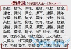 组词大全详解[揉组词]如:隐揉、揉炼、溷揉、和揉、抚揉、揉摩、揉磨、揉制、揉合、揉耳、揉擦、揉革、揉错、揉和、挢揉、磨揉、揉砑、揉挪、杂揉、错揉、搓揉、揉弄...