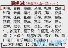 组词大全详解[孺组词]如:冲孺、髫孺、童孺、幺孺、稚孺、宦孺、妇孺、老孺、孺月、孺齿、孺儿、婴孺、幼孺、孤孺、和孺、孩孺、耄孺、孺褓、孺婴、孺弱、孺年、孺蒙...