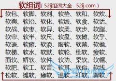 组词大全详解[软组词]如:软包、软脚、软剂、软垫、软和、软炊、软舆、软抬、软化、软缎、软食、软话、软战、软枣、软舁、软柔、软步、软脂、软帘、软半、软尺、软盘...