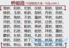 组词大全详解[桥组词]如:雪桥、阳桥、圯桥、仪桥、阴桥、银桥、驿桥、玉桥、柘桥、指桥、舟桥、危桥、渭桥、堍桥、天桥、鼋桥、笮桥、仙桥、河桥、红桥、官桥、拱桥...