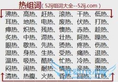 组词大全详解[热组词]如:沸热、高热、赶热、滚热、干热、低热、耳热、地热、电热、废热、伏热、打热、瘅热、炽热、残热、懊热、赤热、趁热、炙热、中热、滞热、壮热...