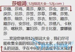 组词大全详解[莎组词]如:莎随、莎鸡、青莎、摩莎、莎虫、逻莎、戾莎、厄莎、莎笠、莎草、莎帷、莎笼、香莎、细莎、汁莎、莎衣、射莎、踏莎、踏莎行、安莎社、莎塔八...