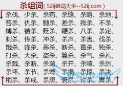 组词大全详解[杀组词]如:杀伐、少杀、杀药、杀缝、杀略、杀地、笞杀、仇杀、雠杀、差杀、残杀、不杀、搏杀、镳杀、贬杀、鞭杀、八杀、杀定、刺杀、传杀、冲杀、杀声...