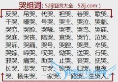 组词大全详解[哭组词]如:反哭、吊哭、代哭、袒哭、巷哭、歌哭、干哭、嚎哭、号哭、哭主、哭泣、哭临、哭穷、哭脸、哭嚎、哭奠、哭鸟、哭庙、哭庭、哭丧、陪哭、哀哭...