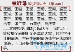 组词大全详解[奎组词]如:奎墨、奎画、奎壁、奎蹄、奎阁、璧奎、奎光、奎垣、奎堂、奎章、奎藻、奎文、奎宁、奎翰、奎宿、奎踽、奎札、宸奎、西奎、张二奎、五奎桥、...
