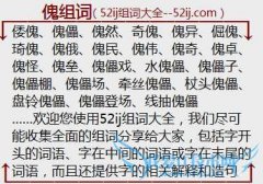组词大全详解[傀组词]如:倭傀、傀儡、傀然、奇傀、傀异、倔傀、琦傀、傀俄、傀民、傀伟、傀奇、傀卓、傀怪、傀垒、傀儡戏、水傀儡、傀儡子、傀儡棚、傀儡场、牵丝傀...