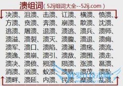 组词大全详解[溃组词]如:决溃、沮溃、击溃、讧溃、横溃、愤溃、方溃、贲溃、奔溃、崩溃、散溃、沈溃、逃溃、屠溃、退溃、溃逃、溃兵、溃师、溃溢、溃裂、溃灭、溃腹...