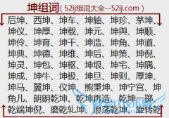 组词大全详解[坤组词]如:后坤、西坤、坤车、坤轴、坤珍、茅坤、坤仪、坤厚、坤载、坤元、坤舆、坤顺、坤伶、坤育、坤干、坤造、坤角、坤道、坤典、坤德、坤维、坤后...