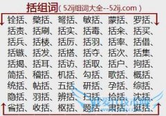组词大全详解[括组词]如:铨括、檠括、弩括、敏括、蒙括、罗括、括责、括刷、括实、括毒、括籴、括买、括兵、括楼、括厉、括羽、括率、括借、括镞、括发、括搭、括夺...