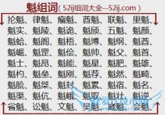 组词大全详解[魁组词]如:抡魁、律魁、瘤魁、酋魁、联魁、里魁、魁实、魁陵、魁诡、魁颀、五魁、魁颜、魁蛤、魁阁、魁梧、魁博、魁纲、魁酋、魁崛、魁罡、魁侩、魁帅...