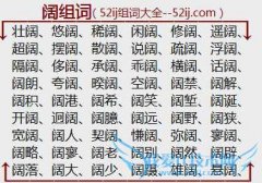 组词大全详解[阔组词]如:壮阔、悠阔、稀阔、闲阔、修阔、遥阔、超阔、摆阔、散阔、说阔、疏阔、浮阔、隔阔、侈阔、承阔、乖阔、横阔、话阔、阔朗、夸阔、暌阔、空阔...