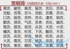 组词大全详解[苦组词]如:离苦、耐苦、难苦、留苦、苦厄、苦恶、苦船、苦草、苦斗、苦胆、苦毒、苦功、口苦、困苦、苦吟、苦志、凄苦、劬苦、勤苦、侵苦、气苦、苦参...