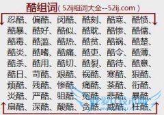 组词大全详解[酷组词]如:忍酷、偏酷、闵酷、酷刻、酷寒、酷愤、酷暴、酷好、酷似、酷耽、酷惨、酷儒、酷毒、酷滥、酷热、酷贫、酷祸、酷楚、酷炎、酷嗜、酷痛、酷吏...