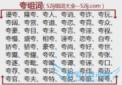 组词大全详解[夸组词]如:谩夸、隆夸、夸人、夸诮、夸诈、夸玩、夸阔、夸赏、夸道、夸恣、夸竞、夸众、夸豪、夸目、夸末、夸言、夸淫、夸视、夸慢、盛夸、相夸、诬夸...
