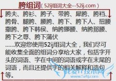 组词大全详解[胯组词]如:胯夫、胯衫、胯子、带胯、犀胯、胯裆、胯骨、腿胯、腰胯、胯下、胯下人、扭腰撒胯、胯下韩侯、纳胯挪腰、纳胯那腰、胯下之辱、胯下蒲伏 另...
