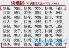 组词大全详解[快组词]如:快畅、快慰、快快、快攻、快便、马快、买快、灵快、凉快、磨快、明快、敏快、命快、民快、快车、快慢、快士、快果、快人、快牛、快捷、快班...
