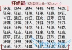 组词大全详解[狂组词]如:狂奔、热狂、清狂、狂野、狂想、狂态、狂突、狂徒、狂慝、狂望、狂鞭、欺狂、米狂、漫狂、疗狂、狂痴、狂乖、狂笔、狂噬、狂嗥、狂人、狂喊...