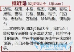 组词大全详解[框组词]如:边框、框定、木框、框图、框架、画框、黑框、窗框、门框、镜框、框子、门边框、老框框、方框图、条条框框、镜框舞台 另外还讲解框的组词、...