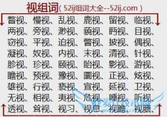 组词大全详解[视组词]如:瞀视、慢视、乱视、鹿视、留视、临视、两视、旁视、渺视、藐视、眄视、目视、窃视、平视、迫视、瞥视、披视、偶视、凝视、奴视、内视、末视...