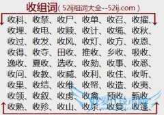 组词大全详解[收组词]如:收科、收禁、收尸、收单、收召、收擢、收埋、收电、收赎、收计、收缆、收秋、收过、收发、收风、收灯、收方、收恩、收得、收夺、田收、推收...