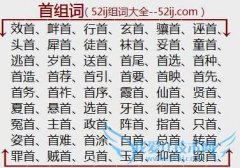 组词大全详解[首组词]如:效首、衅首、行首、玄首、骧首、诬首、头首、犀首、徒首、袜首、妥首、童首、逃首、岁首、送首、首尾、首选、首种、首造、首荐、首引、首要...