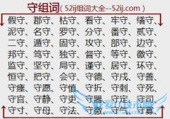 组词大全详解[守组词]如:假守、郡守、枯守、看守、牢守、缮守、泥守、名守、罗守、分守、番守、贰守、二守、遁守、固守、攻守、部守、边守、邦守、笃守、独守、督守...