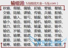 组词大全详解[输组词]如:秋输、倾输、儒输、起输、辇输、罄输、交输、陆输、课输、传输、兵输、般输、逼输、输入、输亏、输服、输效、输荣、输小、输血、输将、输机...