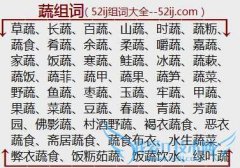 组词大全详解[蔬组词]如:草蔬、长蔬、百蔬、山蔬、时蔬、蔬粝、蔬食、肴蔬、余蔬、柔蔬、嚼蔬、嘉蔬、家蔬、饭蔬、寒蔬、鲑蔬、冰蔬、蔬蔌、蔬饭、蔬菲、蔬甲、蔬果...