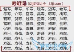 组词大全详解[寿组词]如:强寿、年寿、牟寿、暖寿、迈寿、老寿、考寿、介寿、官寿、高寿、韩寿、胡寿、鹤寿、贺寿、过寿、贵寿、称寿、拜寿、富寿、得寿、倒寿、登寿...