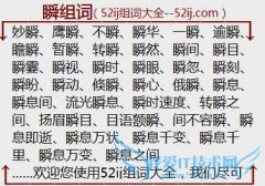 组词大全详解[瞬组词]如:妙瞬、鹰瞬、不瞬、瞬华、一瞬、逾瞬、瞻瞬、暂瞬、转瞬、瞬然、瞬间、瞬目、瞬霎、瞬视、瞬时、瞬眼、瞬忽、瞬刻、瞬盼、瞬动、倏瞬、瞬心...