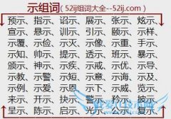 组词大全详解[示组词]如:预示、指示、诏示、展示、张示、炫示、宣示、悬示、训示、引示、颐示、示样、示覆、示俭、示灭、示像、示重、手示、示知、帅示、提示、透示...