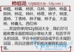 组词大全详解[柿组词]如:柿糕、柿霜、柿饼、乌柿、油柿、柿盘、烘柿、柿花、柿叶、柿蒂、柿子、柿漆、盖柿、丁香柿、柿子椒、柿子金、火盆柿、柿膏儿、西红柿 另外...
