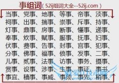 组词大全详解[事组词]如:当事、党事、地事、等事、帝事、淡事、祠事、出事、揣事、崇事、斥事、持事、灯事、鼎事、房事、断事、懂事、递事、奉事、炊事、赋事、服事...