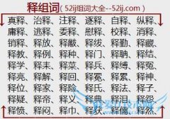 组词大全详解[释组词]如:真释、治释、注释、逐释、自释、纵释、庸释、逃释、委释、慰释、校释、消释、销释、释放、释黻、释绂、释勤、释藏、释教、释例、释种、释门...