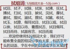 组词大全详解[拭组词]如:拭泪、拭子、拭除、拭抹、拭拂、抚拭、拂拭、扫拭、拭目、披拭、浣拭、摩拭、磨拭、揩拭、湔拭、擦拭、拭眦、收拭、拭玉、拭擦、倾耳拭目、...