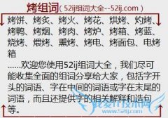 组词大全详解[烤组词]如:烤饼、烤炙、烤火、烤花、烘烤、灼烤、烤鸭、烤烟、烤肉、烤炉、烤箱、烤蓝、烧烤、煨烤、熏烤、烤电、烤面包、电烤箱 另外还讲解烤的组词...