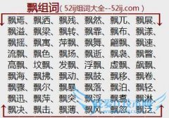 组词大全详解[飘组词]如:飘焉、飘洒、飘残、飘然、飘兀、飘展、飘溢、飘梁、飘转、飘霏、飘布、飘漾、飘摇、飘寓、萍飘、飘舞、翩飘、飘速、流飘、飘色、飘扬、飘逝...