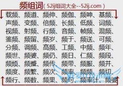 组词大全详解[频组词]如:载频、频道、频伸、频伽、频呻、基频、声频、变频、倍频、长频、低频、词频、视频、射频、行频、音频、帧频、混频、鉴频、频留、频岁、频于...