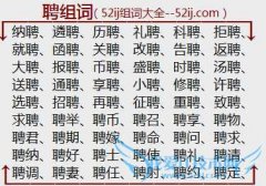 组词大全详解[聘组词]如:纳聘、遴聘、历聘、礼聘、科聘、拒聘、就聘、函聘、关聘、改聘、告聘、返聘、大聘、报聘、币聘、盛聘、时聘、汤聘、送聘、通聘、享聘、小聘...