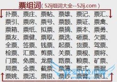 组词大全详解[票组词]如:扑票、票庄、票帖、票雄、票记、票汇、票引、票房、票号、票额、票证、票禽、票箱、票纸、拟票、票摘、票本、票勇、票友、票健、票取、票选...