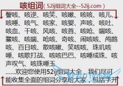 组词大全详解[咳组词]如:謦咳、咳逆、咳笑、咳嗽、咳咳、咳儿、咳唾、咳气、咳家、咳婴、声咳、咳吐、咳血、干咳、风咳、咳首、咳呛、喘咳、鳖咳、咳喘、呛咳、奇咳...