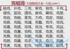 组词大全详解[克组词]如:陪克、扑克、三克、审克、容克、千克、侵克、茄克、清克、裒克、期克、克架、克俭、克核、麦克、力克、克定、克肤、克拔、克践、克减、克翦...